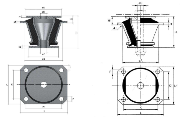 Choosing our conical anti-vibration mounts with square bases means choosing a product that combines innovation and reliability. The square base ensures uniform load distribution, improving stability even under heavy stress. Made from top-quality materials, such as treated steel and custom rubber compounds, these mounts are resistant to wear, corrosion, and extreme environmental conditions. Our experience allows us to offer tailor-made solutions, ensuring optimal performance for every application.