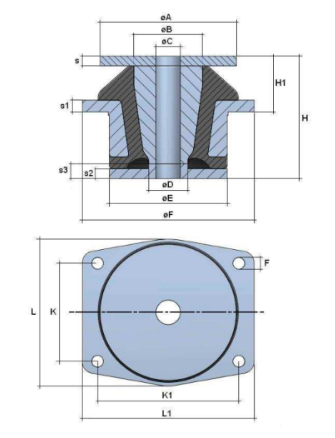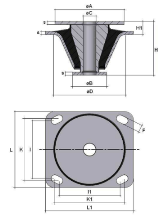 | Code | K | L | K1 | L1 | øA | øB | øC | øD | øE | øF | H | H1 | s | s1 | s2 | s3 | F | Load (Kg) |